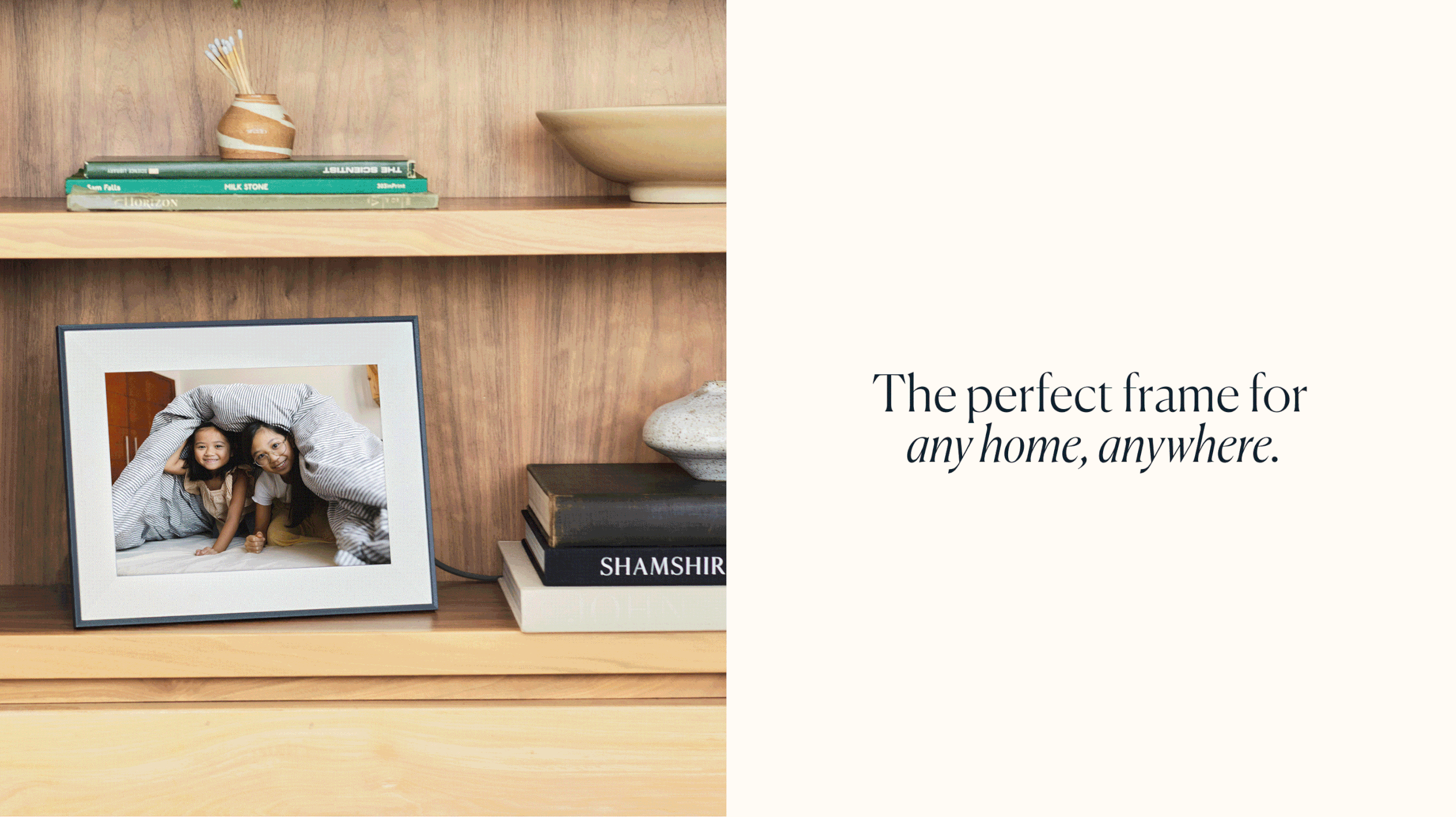 Design and materials are central to Aura’s product philosophy. Every detail—from bezel colors to frame proportions—is meticulously considered to create frames that feel intentional, elevated, and at home in any space. Showcasing this level of craft is a key part of our brand identity. Styling and propping are approached with the same care—thoughtfully selected to reflect real environments while allowing the product to shine.